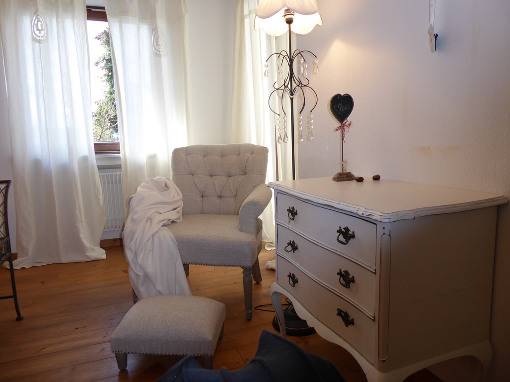 Für 1 Person. Mit gemütlicher Dachschräge, Dachterrasse und einem schönen Blick in die Natur, Badezimmer mit DU/WC, Haarfön, Fußbadewanne, Bademantel. Schreibtisch, Zimmersafe, Eicheboden, Sofa und Polstersessel. Das eigene hübsche Badezimmer erreichen Sie mit 3 Schritten über die eigene kleine Diele. Die Diele ist nicht einsehbar und mit einer Türe abgeschlossen! Ein sehr hübsches Zimmer und gerne auch buchbar zusammen mit dem Gänseblümchen. Für gute Freundinnen usw..