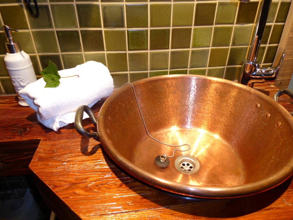 1 Schlafzimmer mit Doppelbett, das Majoran. 1 Schlafzimmer für 1 Person mit Waschbecken, das Tymian. Ein hübsches Badezimmer mit antiken Kacheln, Dusche, Badewanne, Toilette, Fußbadewanne, Bademantel, Haarfön.